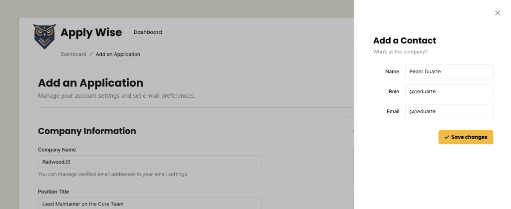 Things are coming together nicely. But we still have hard-coded contacts into the Job Application form. Let's make this dynamic.